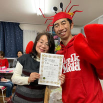 終始ふぐの被り物をかぶりながらのトークは笑いの渦♪